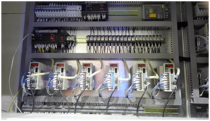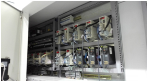 兩臺PLC主機之間通過CAN open實現(xiàn)數(shù)據(jù)交換,同時控制13套JSDEP系列伺服,3臺S310+變頻器,并通過10寸HMI實現(xiàn)人機交互。